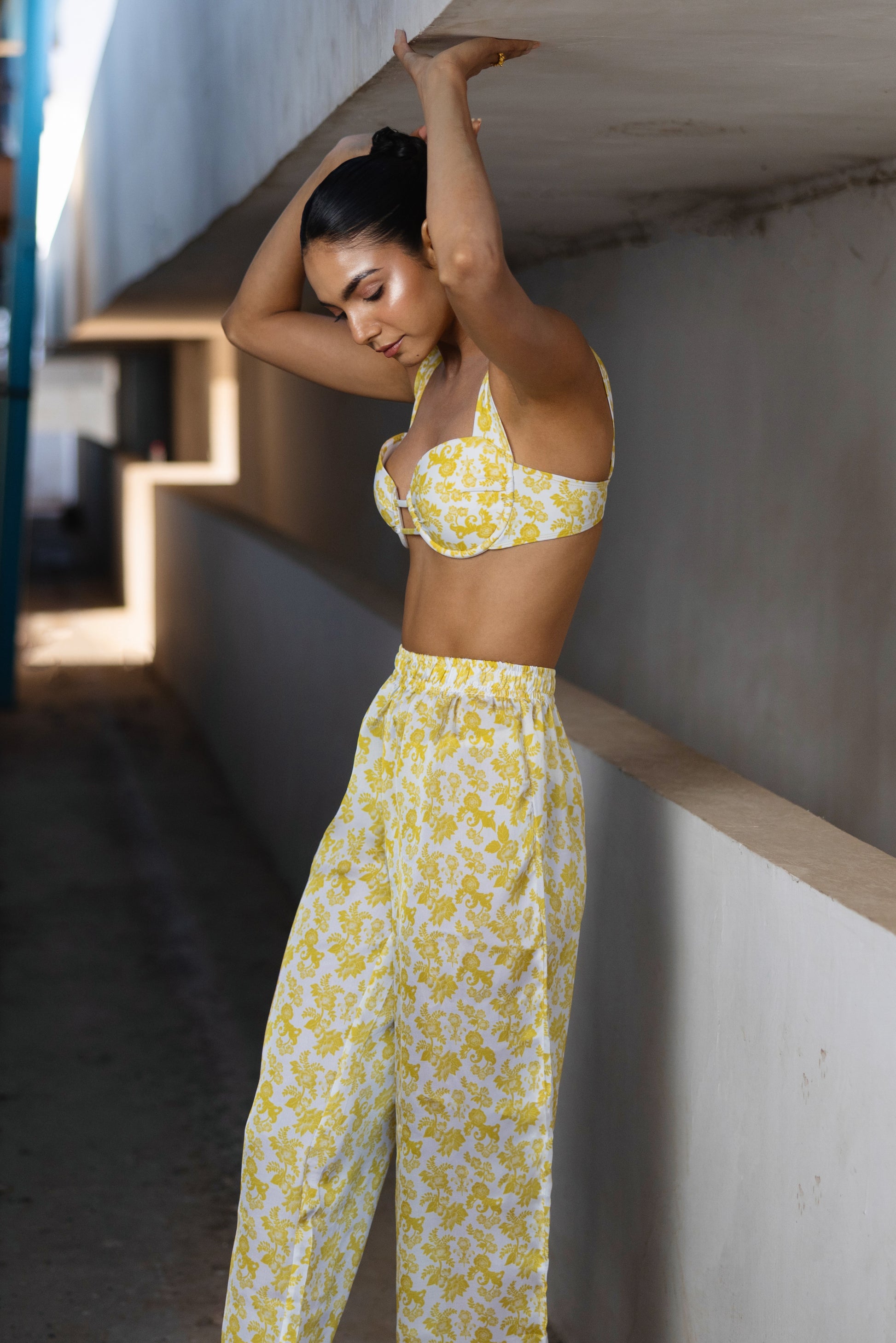 Effortless elegance meets everyday comfort.These high-waisted, straight-fit pants drape beautifully, creating a sleek and polished silhouette. The soft, airy fabric moves with ease, while the Jaipuri-inspired golden print adds a touch of tradition.